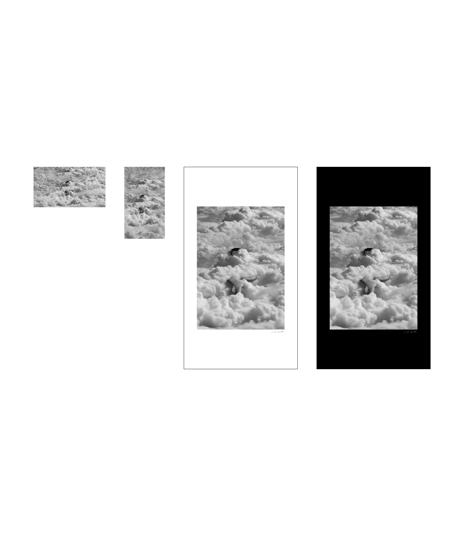 A monumental feminine form rests among drifting clouds, her presence blending seamlessly with the sky. The work explores the boundary between consciousness and dream, where scale, isolation, and visual hierarchy invite the viewer to reconstruct the narrative. The figure hovers at the edge of perception, partially suggested through absence and mist, creating a sense of weightless ambiguity.
